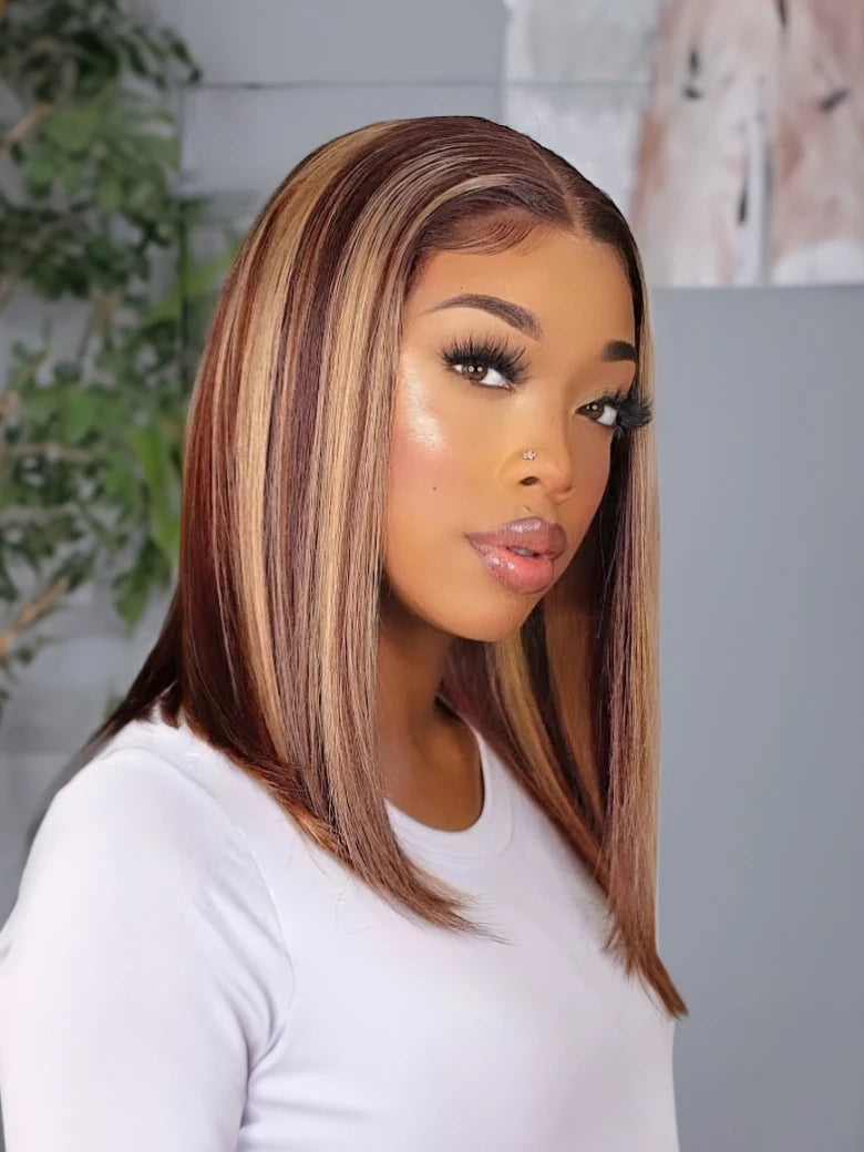 Beme Glueless ReadyWear 13x4 Blonde Highlight BOB Wig 100% Human Hair