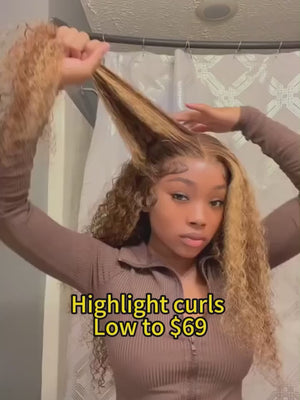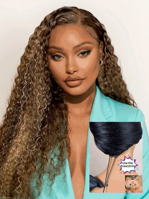 Beme 13x4 Glueless ReadyWear MultiLace Blonde Highlights Jerry Curly Wig 100% Human Hair Real Ear To Ear With Invisi Drawstring Wig Lace Fit Better