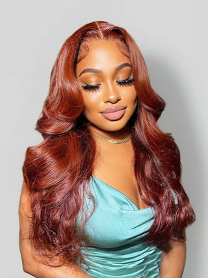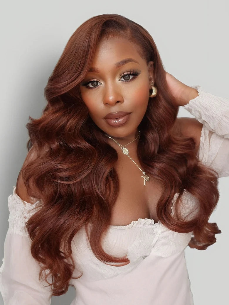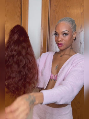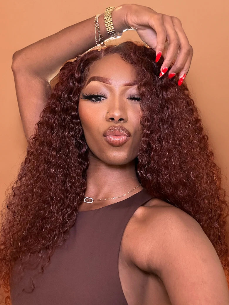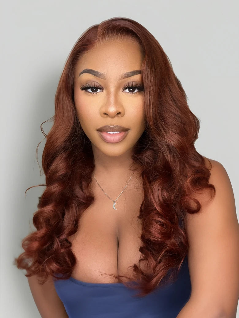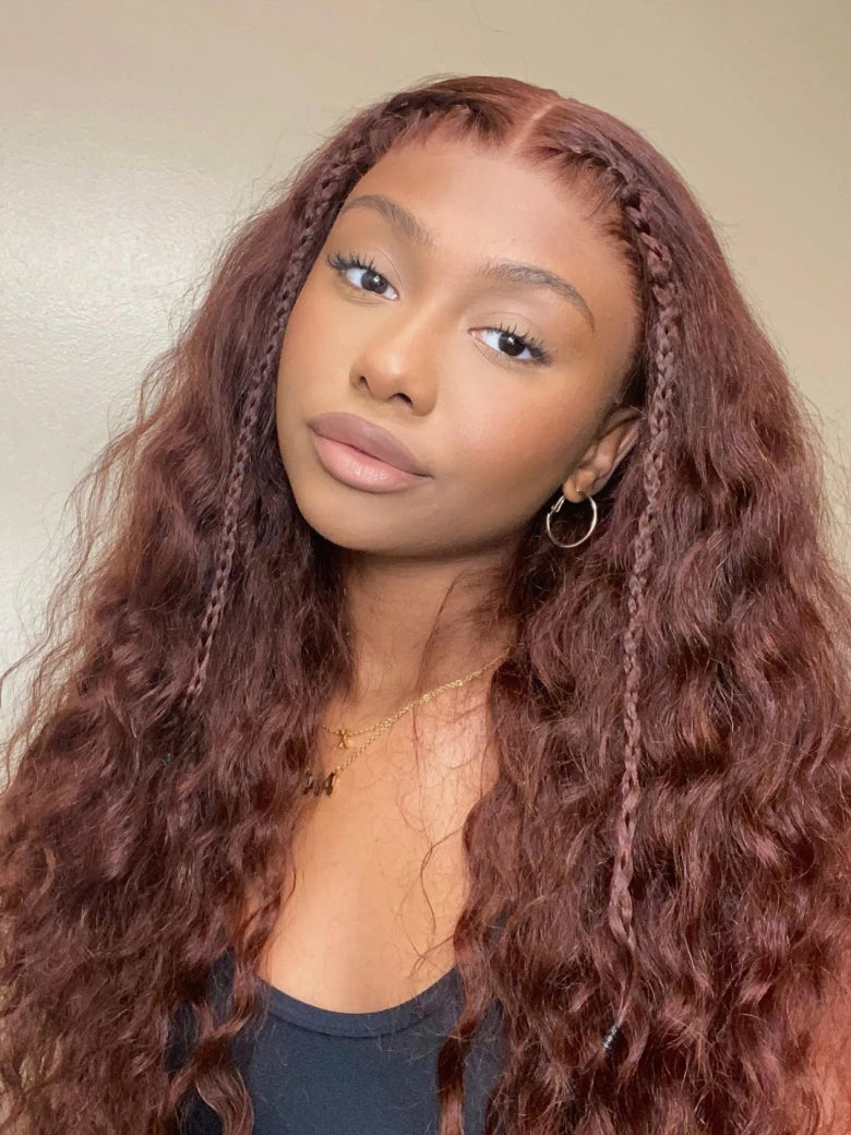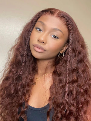 Beme Glueless ReadyWear 13x4 Reddish Brown Water Wave Wig 100% Human Hair