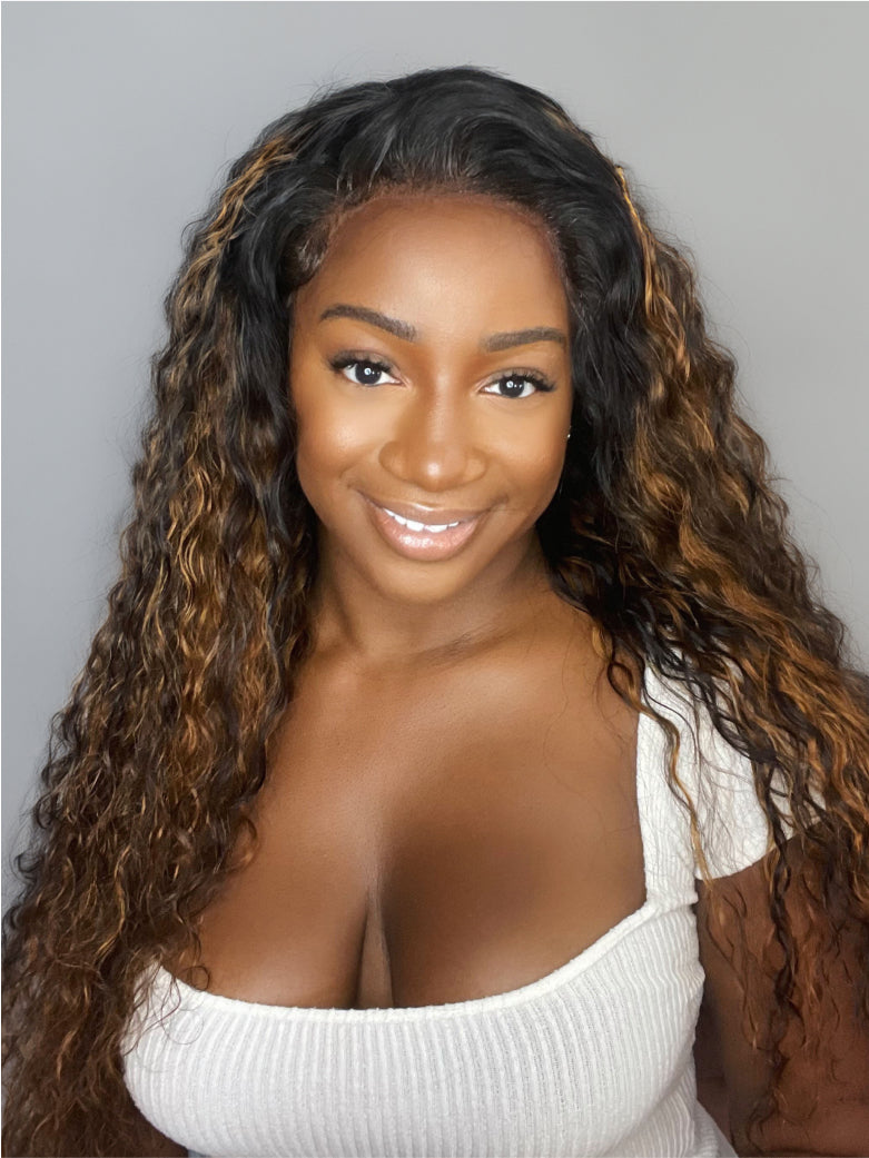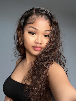 Beme Glueless ReadyWear 13x4 Brown Highlights Water Wave Wig 100% Human Hair