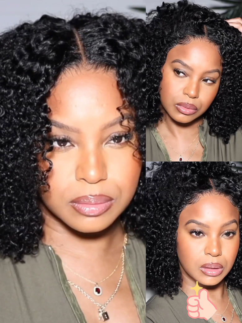 Beme Glueless ReadyWear 13x4 Natural Black Jerry Curly BOB Wig 100% Human Hair