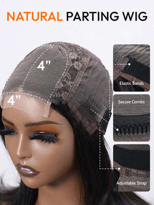 Beme Glueless ReadyWear 4x4 Natural Black Silk Straight BOB Wig 100% Human Hair