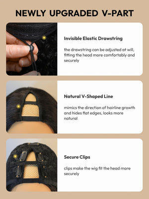 Beme V Part 2.0 Yaki Straight Glueless Natural Black Women Hair Wigs 100% Human Hair